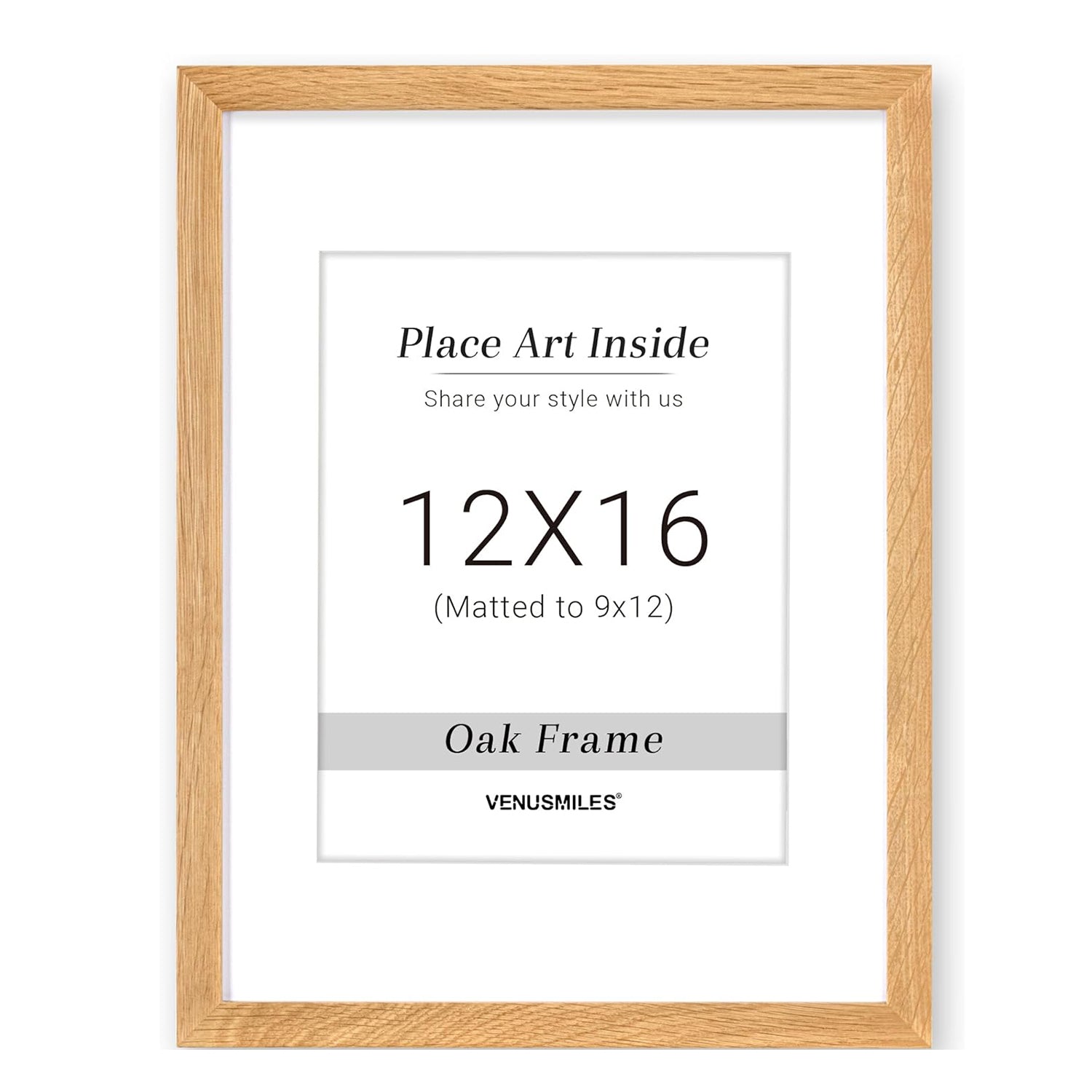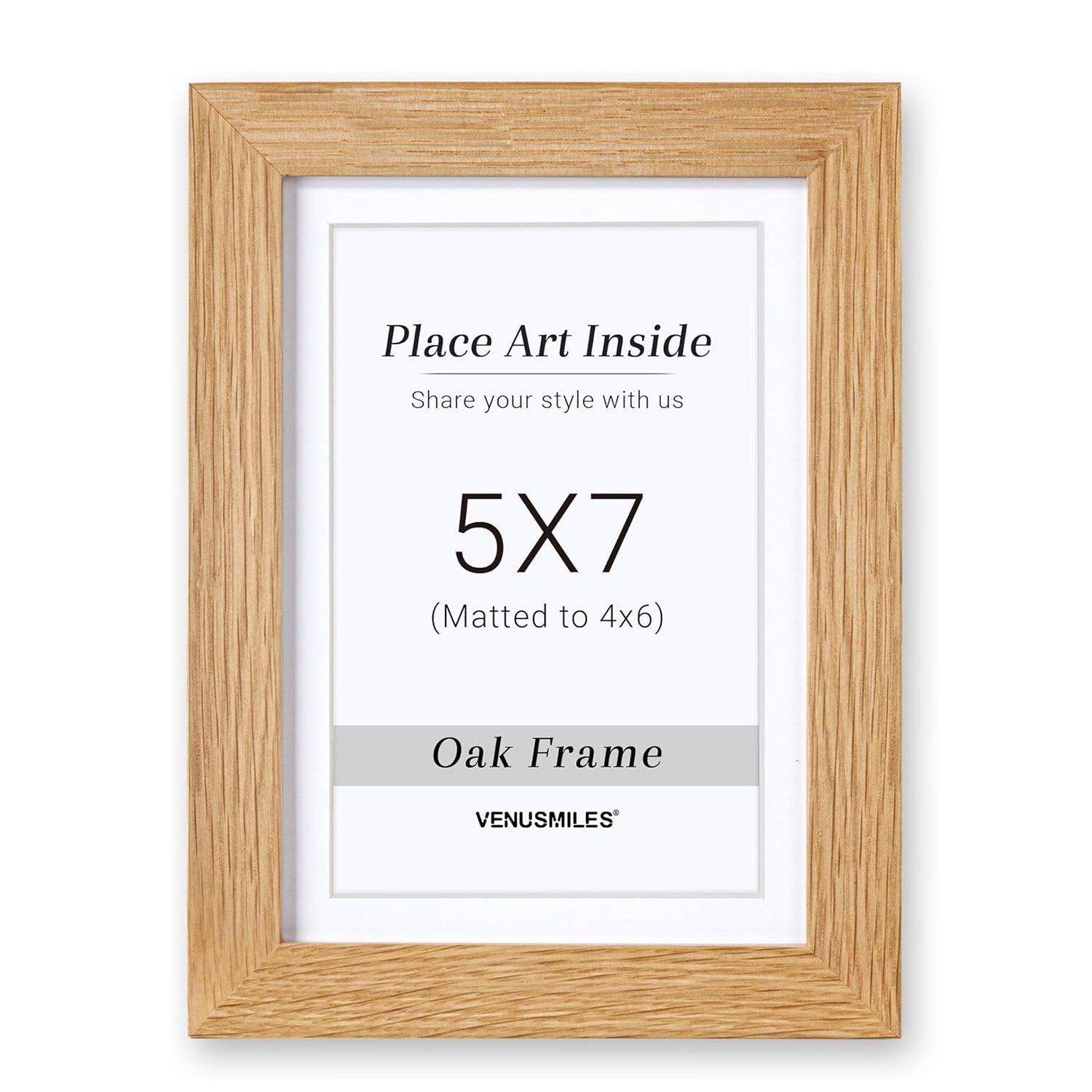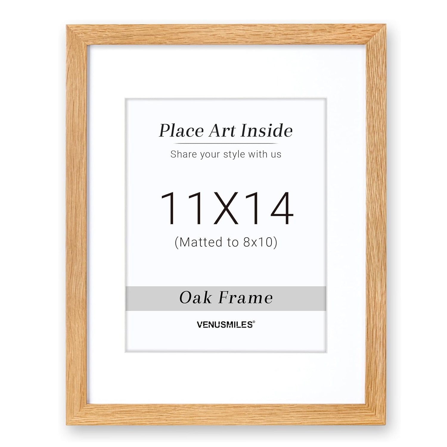 Style: Introducing Venusmiles 10 Sizes Natural Oak Wood Picture Frame. This high quality solid oak frame displays photos fully or with the removable mat. The natural wood grain adds an authentic touch and the tempered glass front provides protection from scratches, fingerprints, and dirt. Transform your space with this sleek and durable frame.