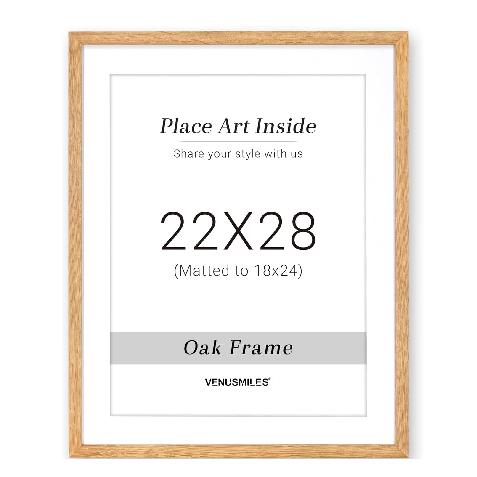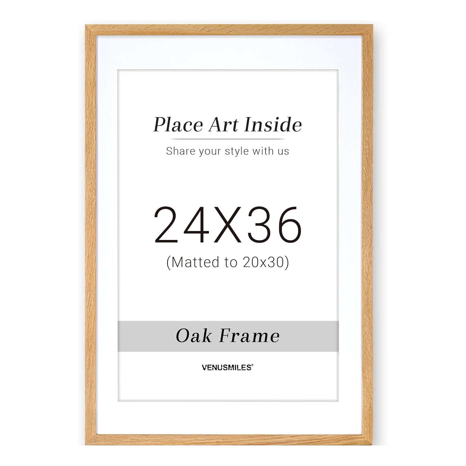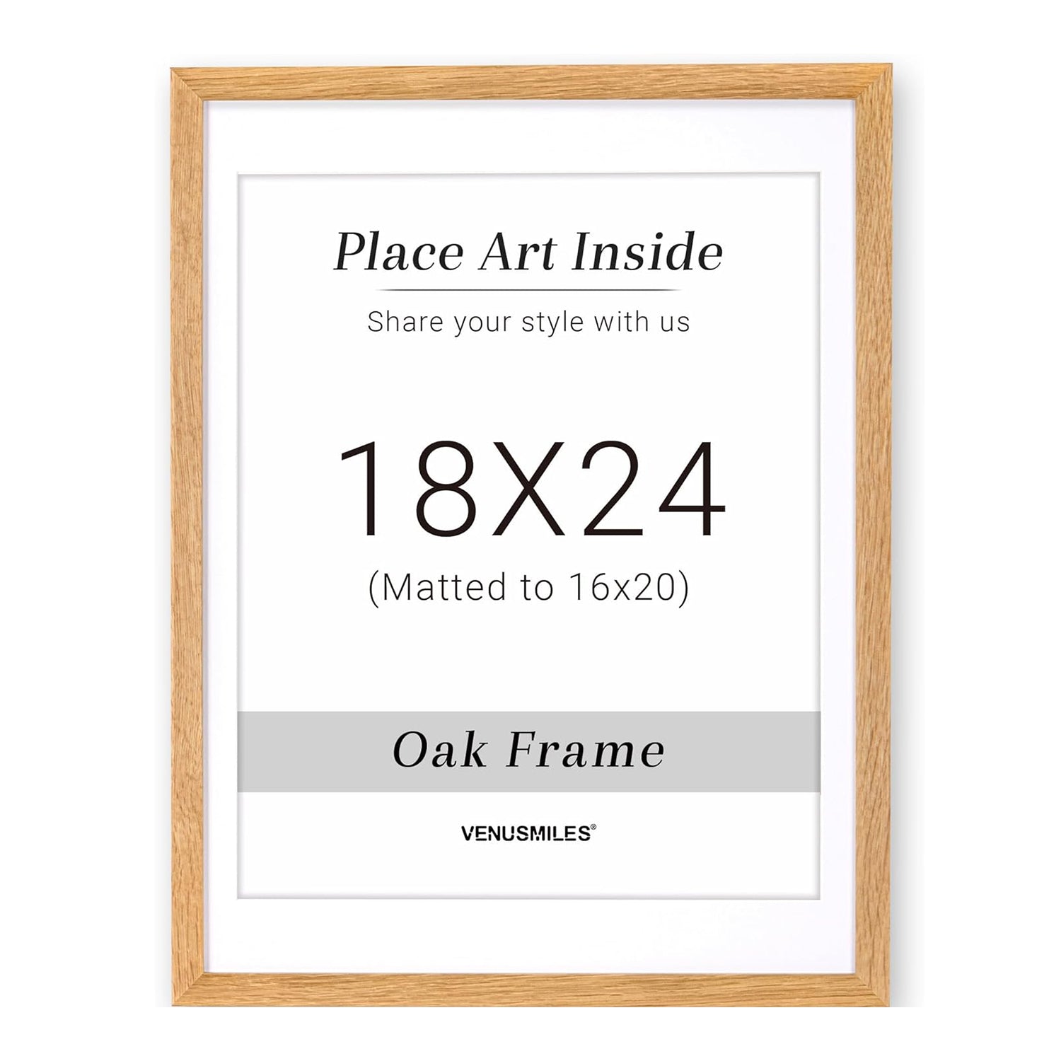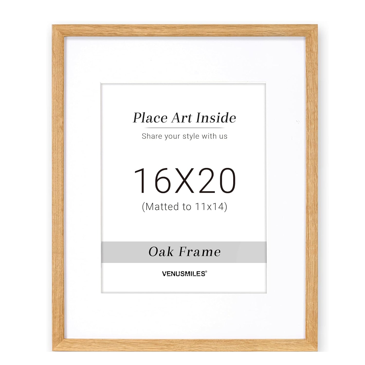 Style: Introducing Venusmiles 10 Sizes Natural Oak Wood Picture Frame. This high quality solid oak frame displays photos fully or with the removable mat. The natural wood grain adds an authentic touch and the tempered glass front provides protection from scratches, fingerprints, and dirt. Transform your space with this sleek and durable frame.