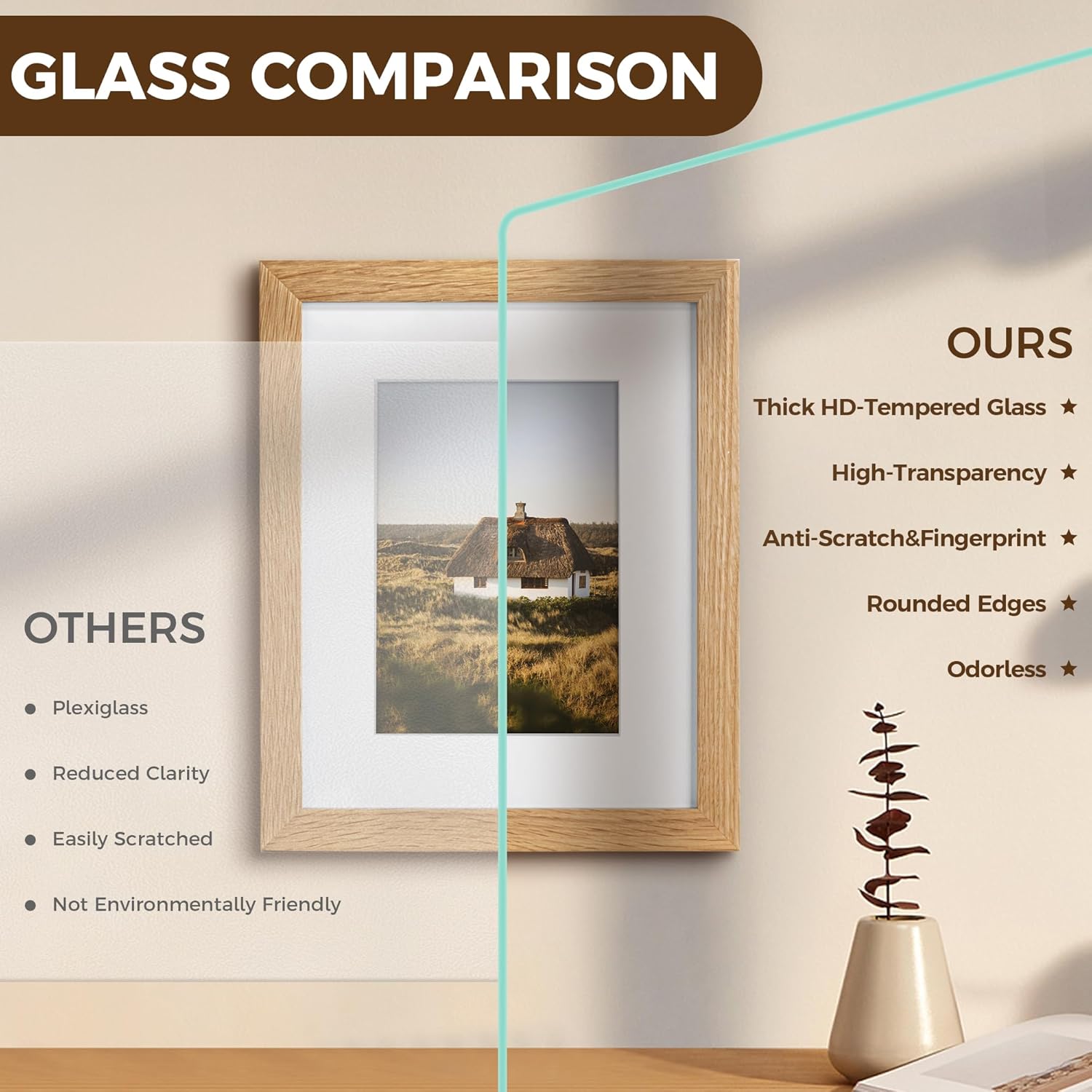 Stylish Design: Display your precious memories in style with Venusmiles Natural Oak Wood Picture Frame. Made with durable oak wood and tempered glass, it can be hung horizontally or vertically to fit your space. Cherish your special moments with family and friends with this stylish and versatile frame.