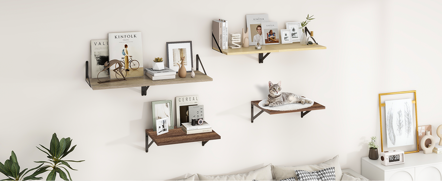 Easy To Install:This wall shelf is very easy to assemble. We also have detailed instructions to follow. You can assemble it quickly in less than 20 minutes. After installation, all the brackets will be invisible.